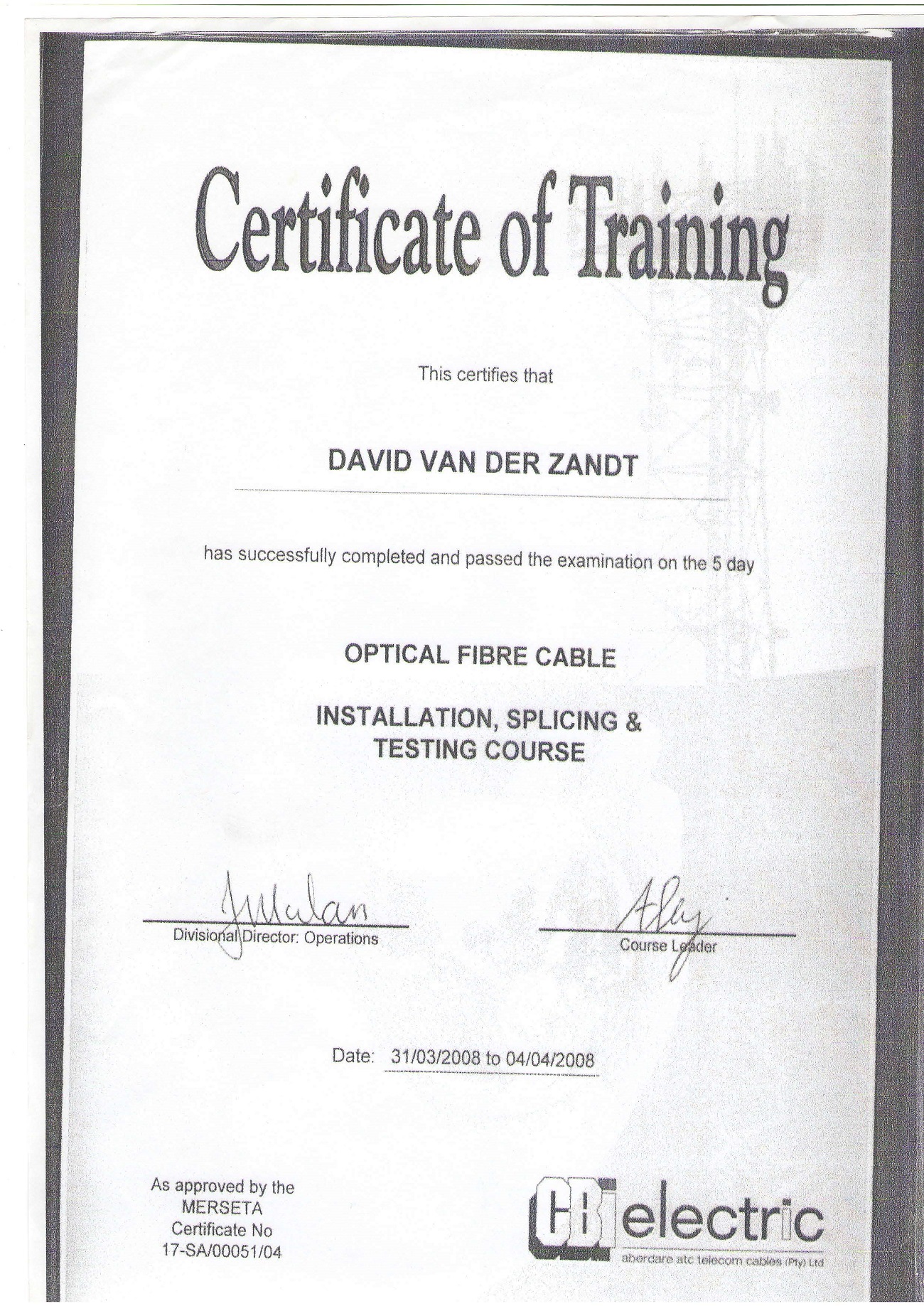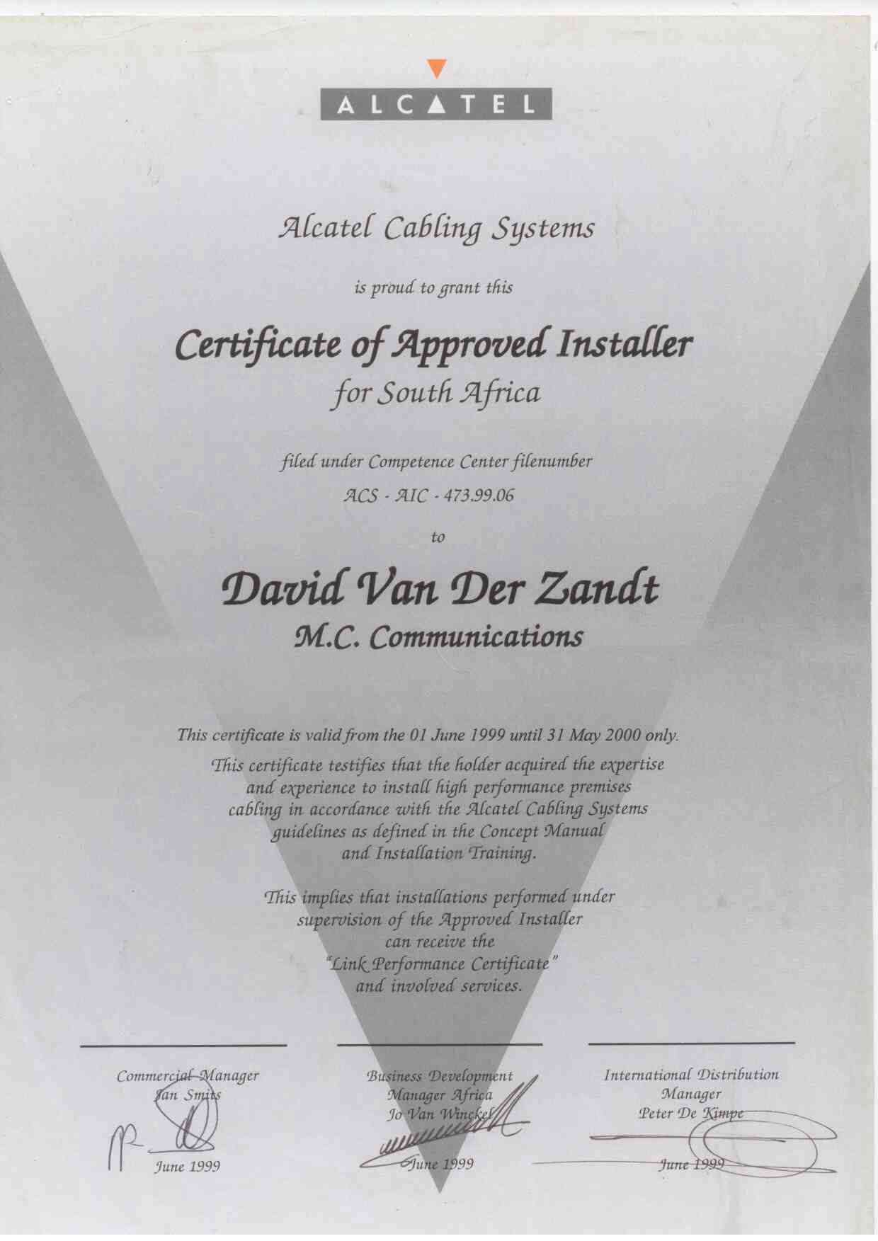 Select from the Index of Certificates bellow to jump to the supporting certificate.