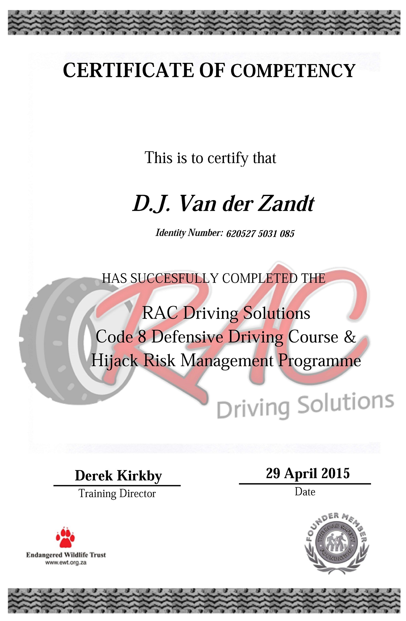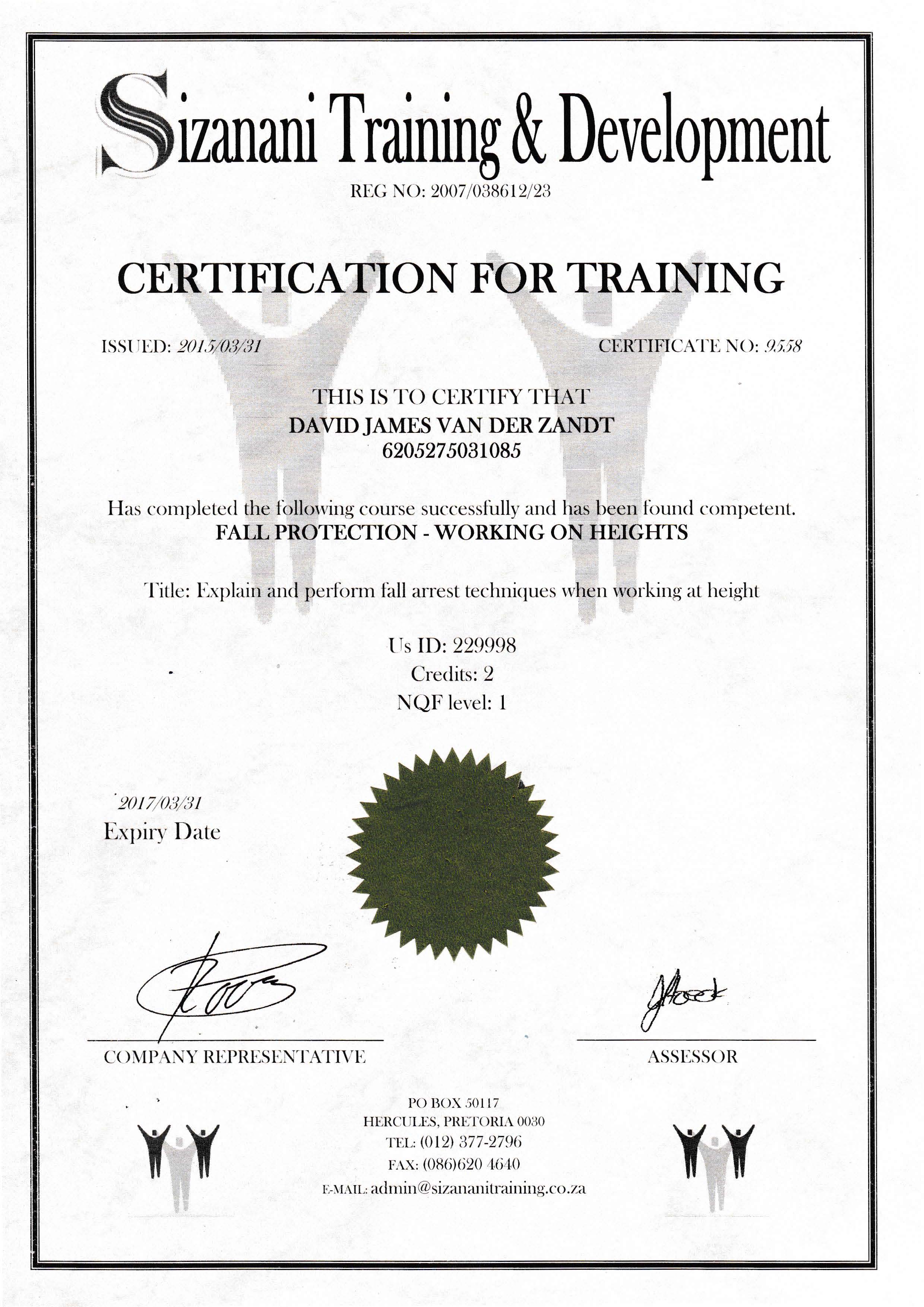 Supporting Certificates
